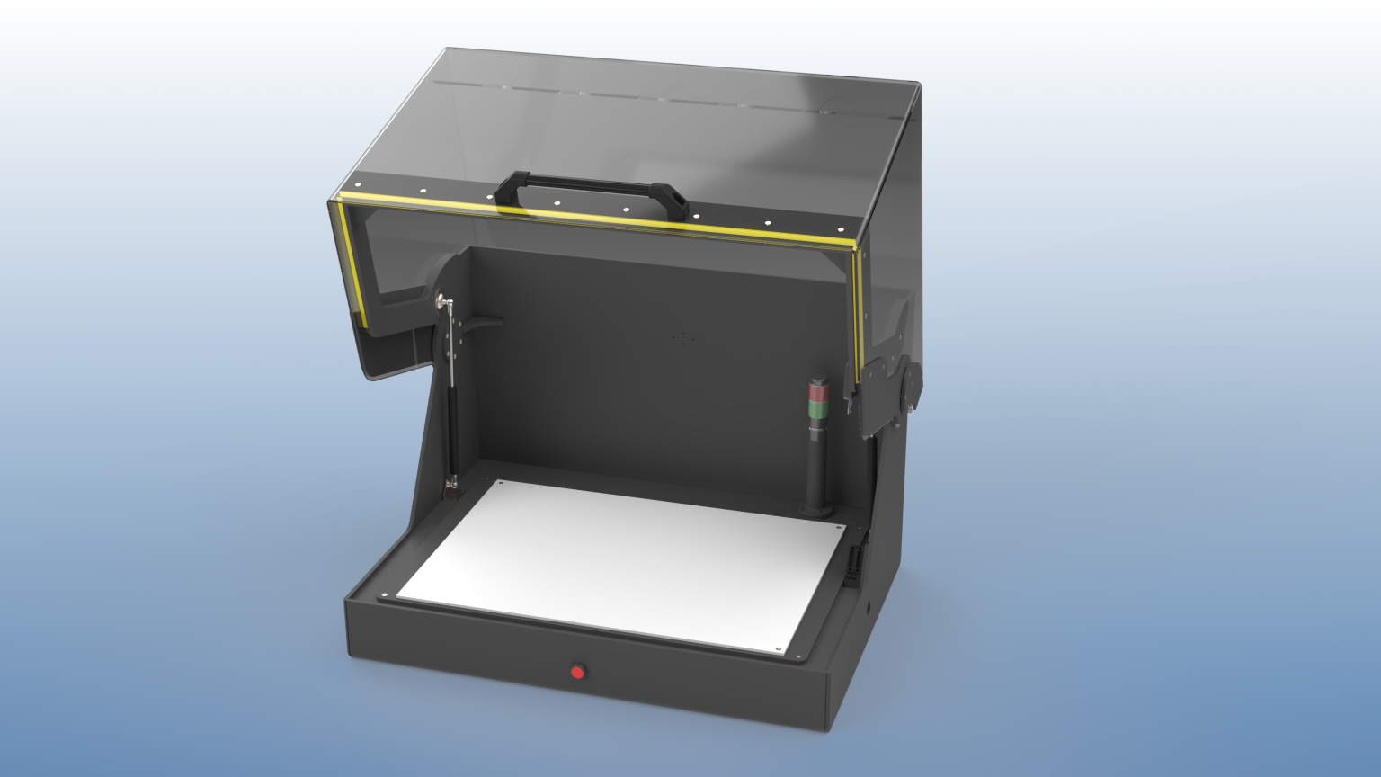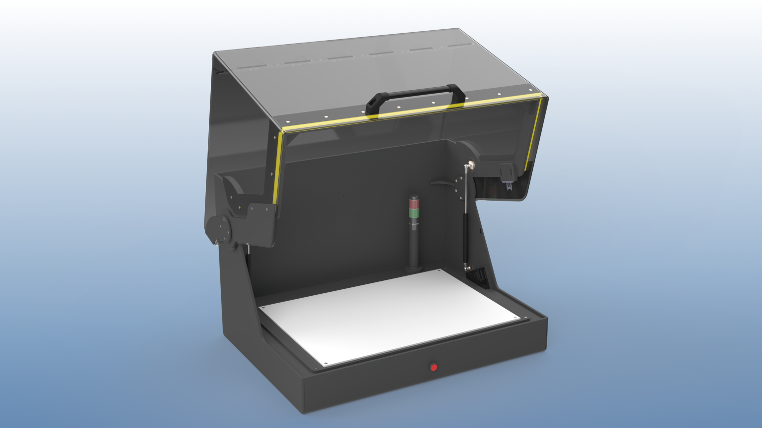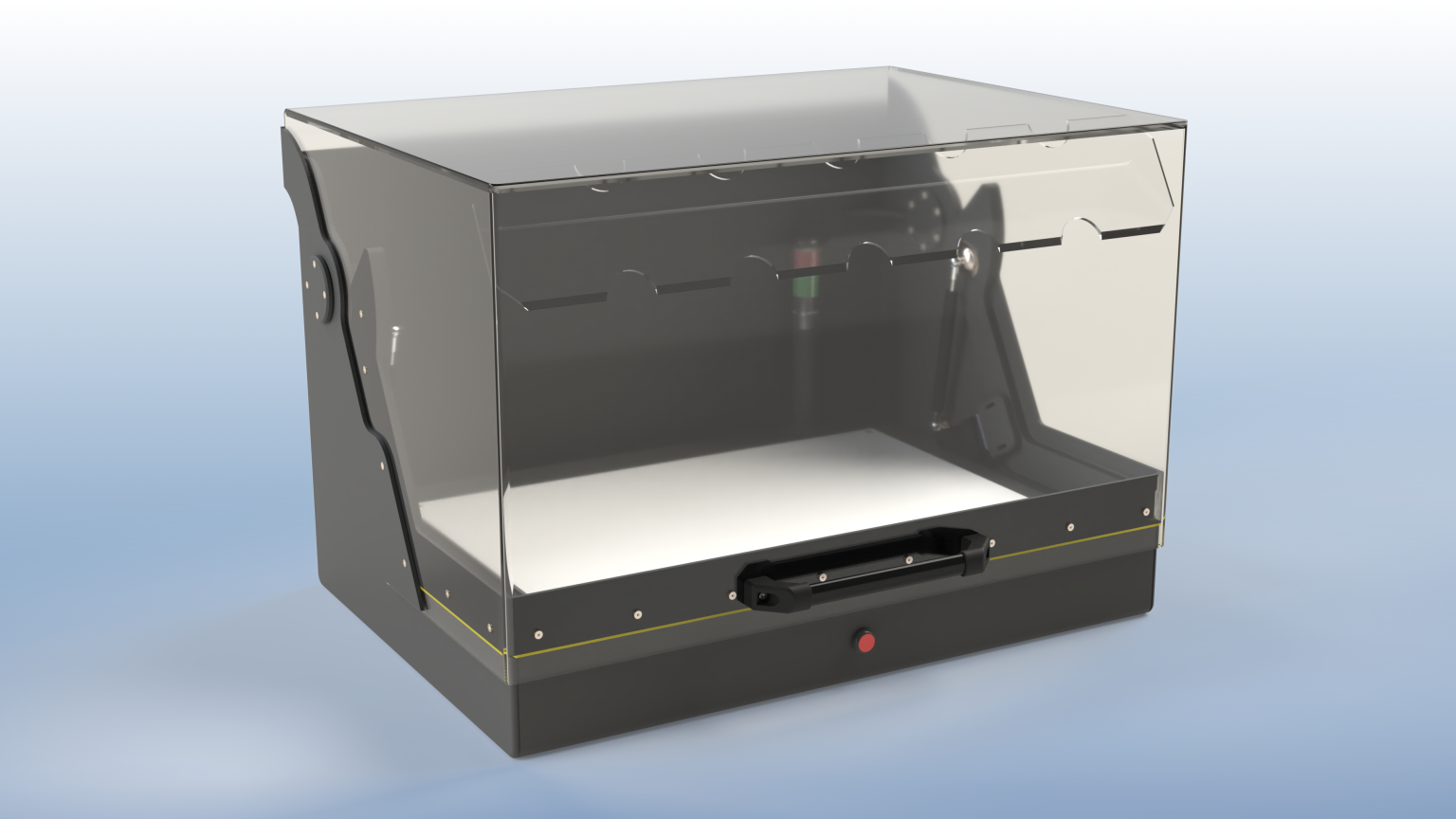 - Geschlossene Kabine zur Prüfung von Kabeln mit 10.000 Volt.