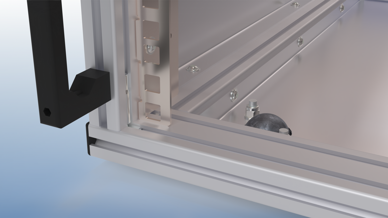 - Der Aufbau aus Aluminiumprofilen als Rahmen und Blechen für die Wand ermöglicht eine einfache und trotzdem steife Konstruktion.