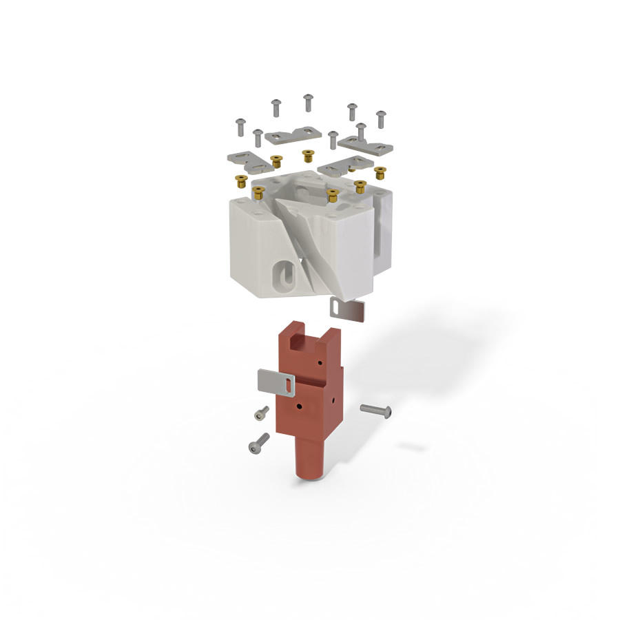 Alle Vorrichtungen werden auf der unteren Elektrode aufgebaut. Sie können wählen zwischen fertigen Elektroden verschiedener Hersteller oder hauseigenen Standardelektroden als Basis. Eine Vorrichtung besteht in der Regel aus einem preisgünstigen Grundkörper im 3D Druck, kombiniert mit günstigen Standardteilen namhafter Hersteller.